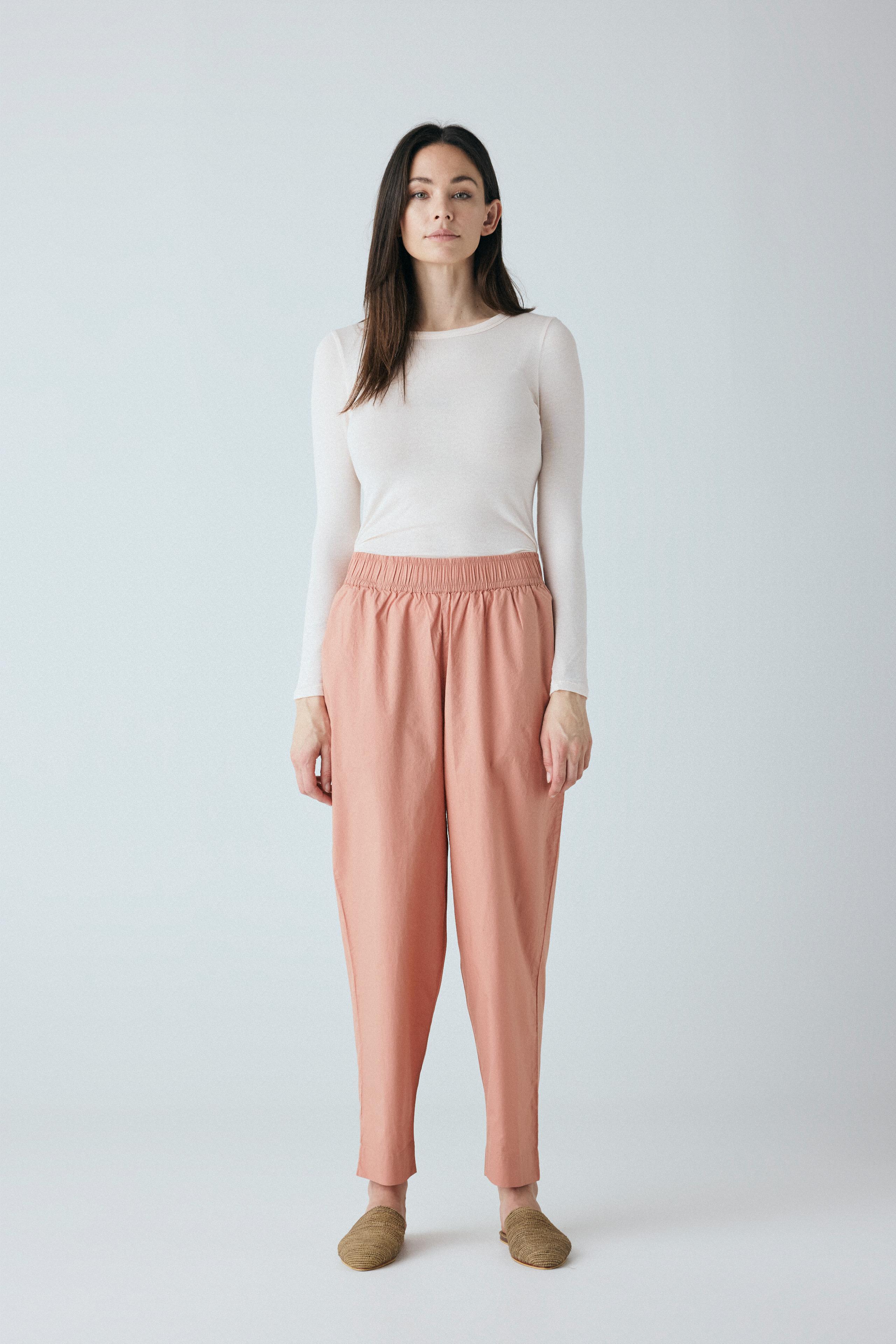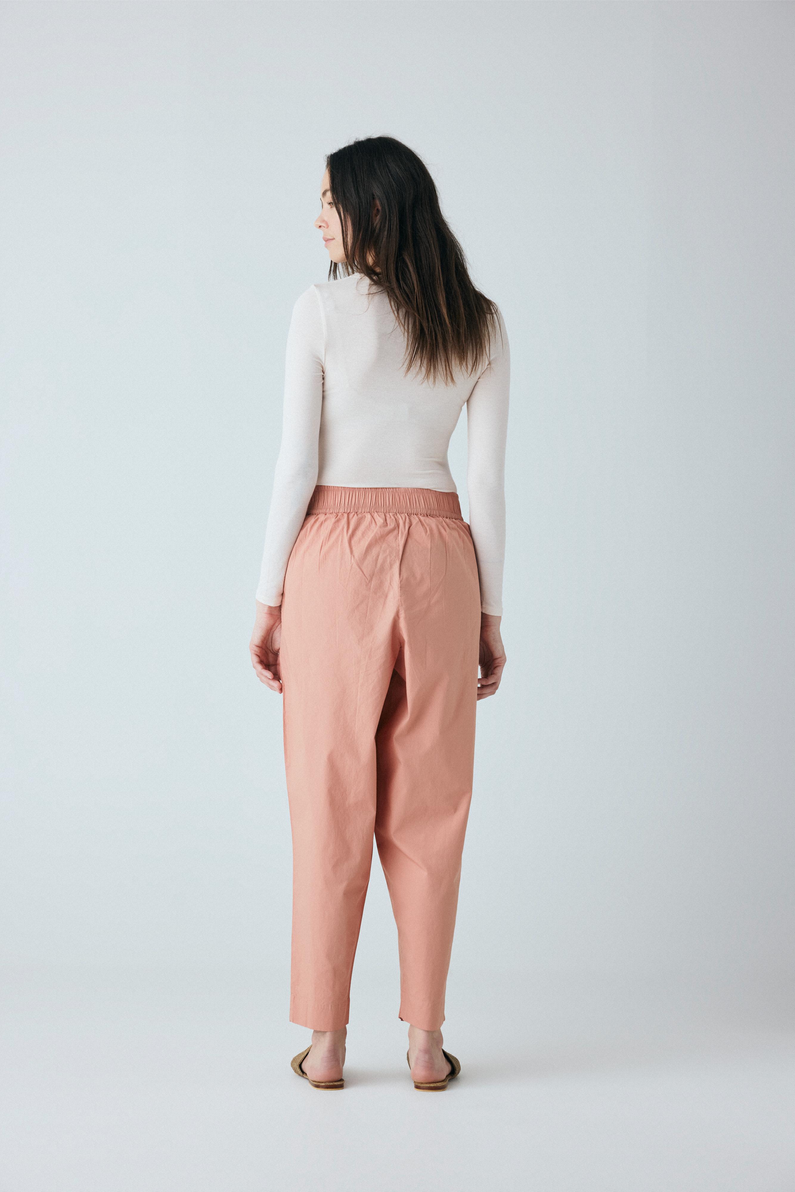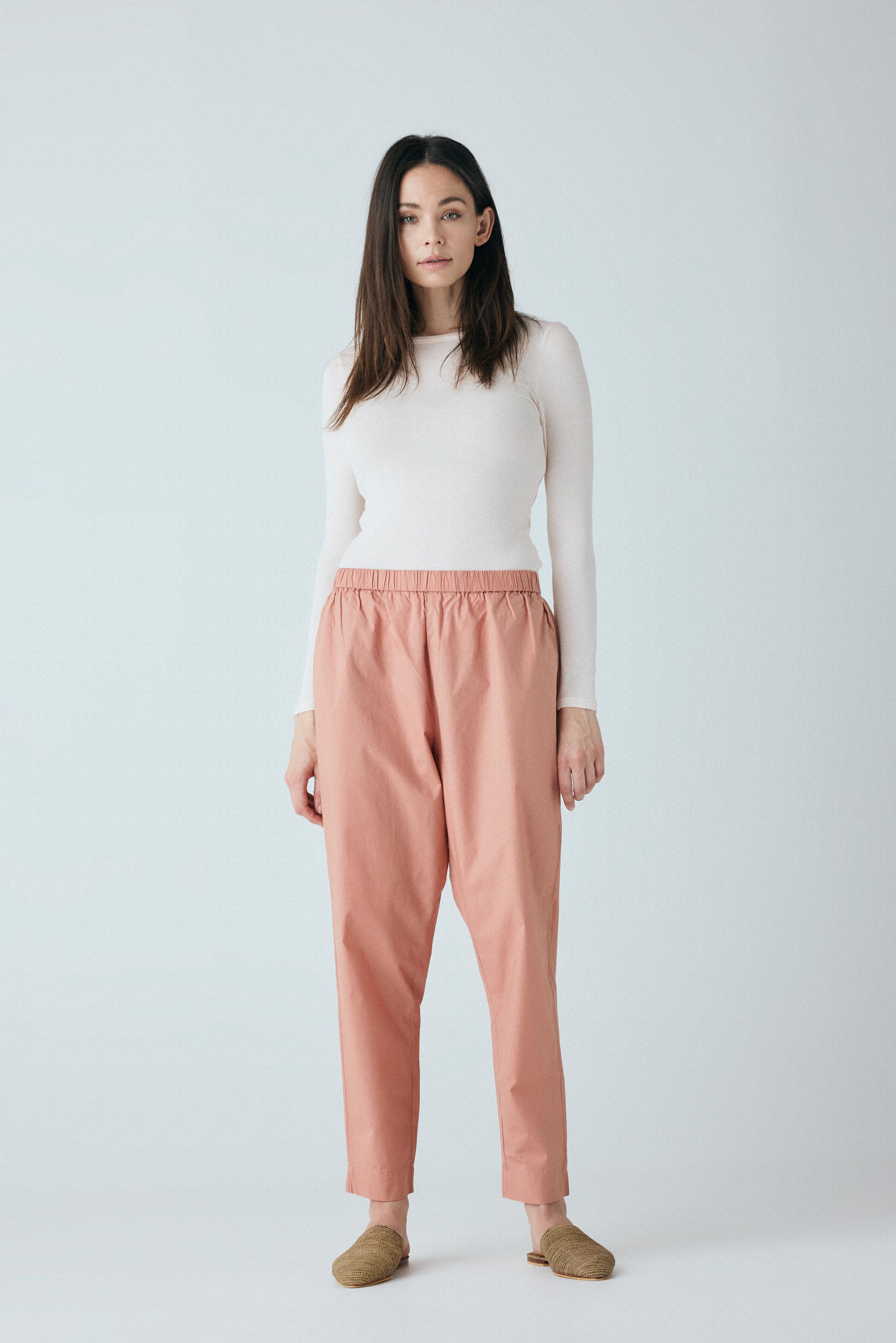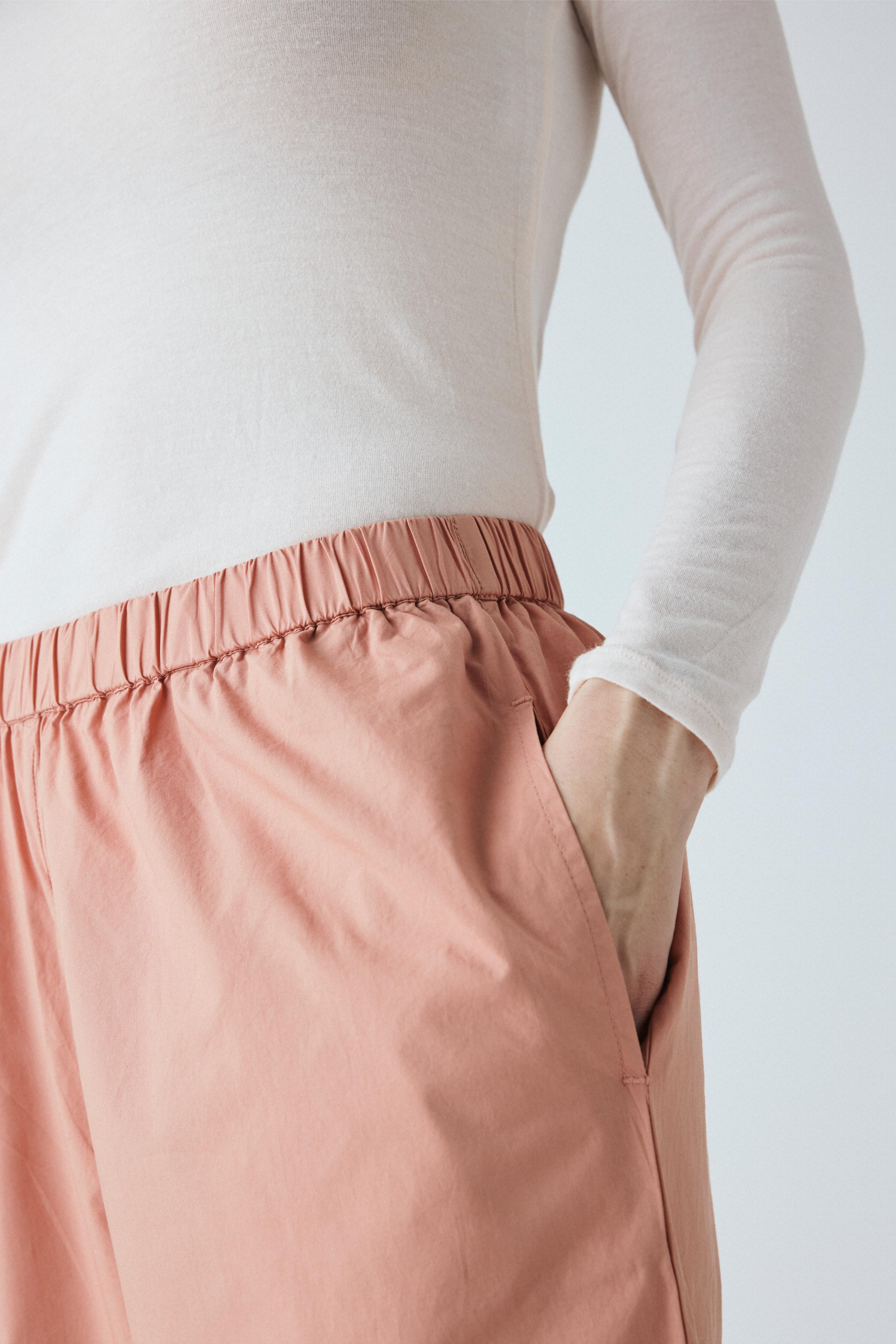 Copenhagen ankelbukser er enkel med en bred elastik i taljen, usynlige sidelommer og et benforløb med vidde.