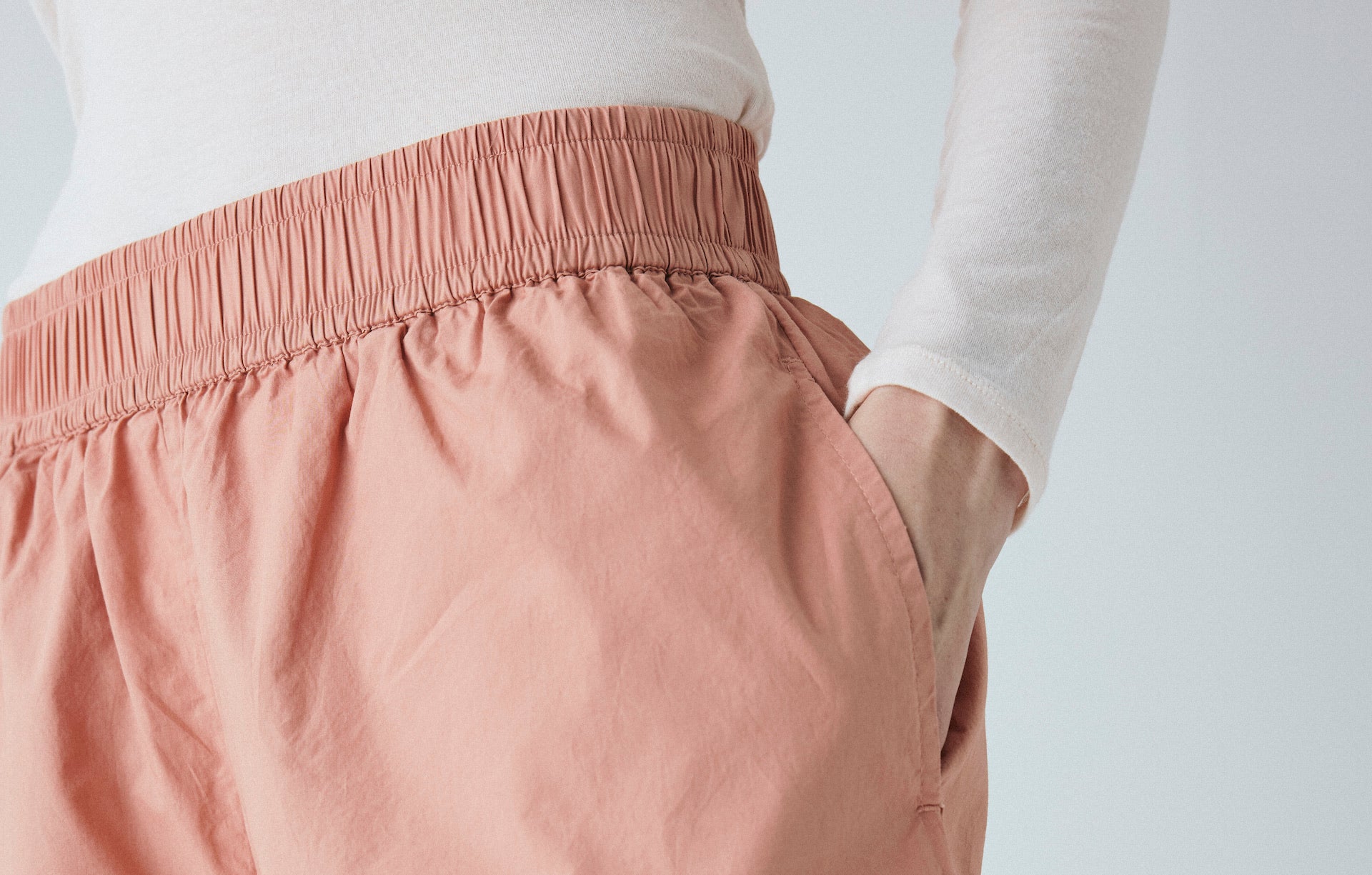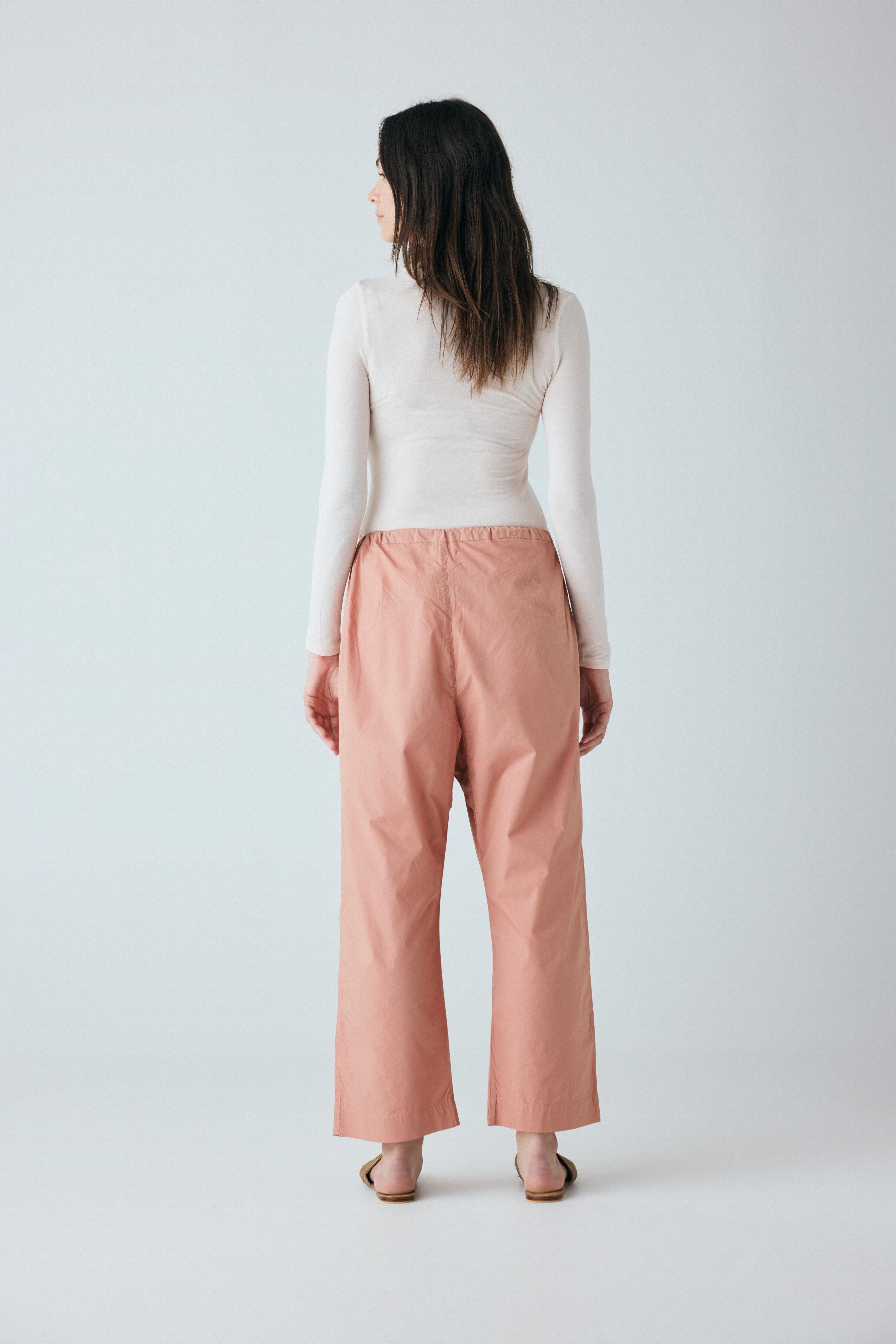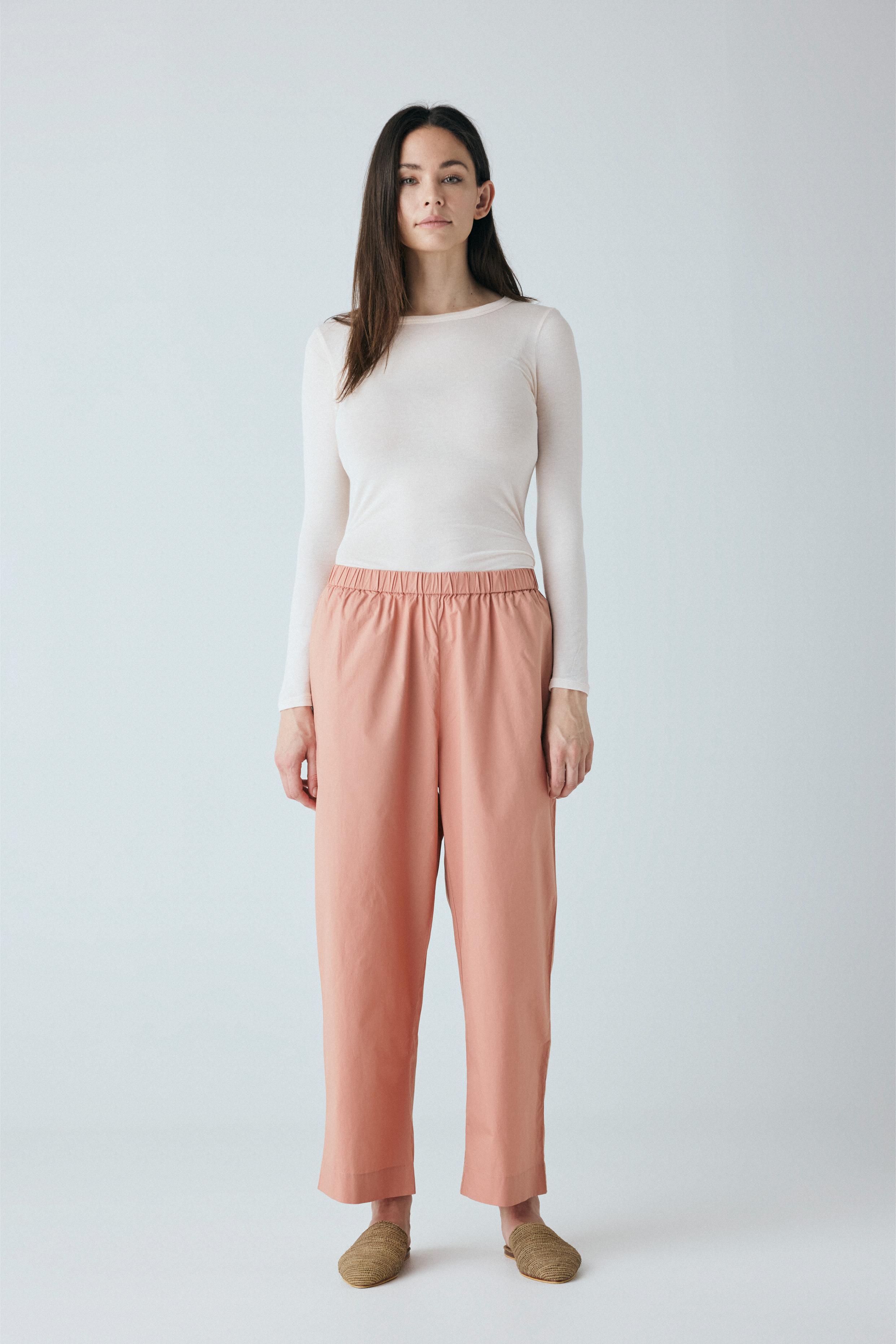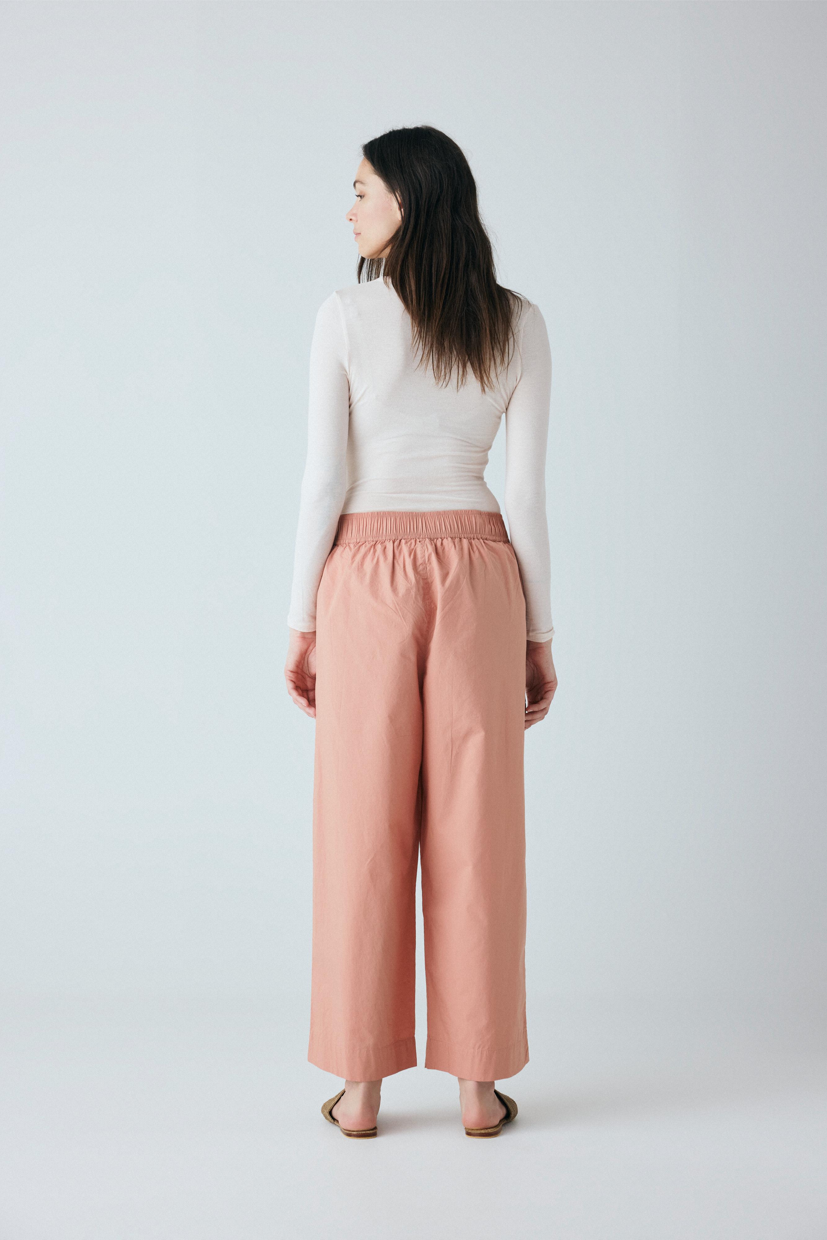 Copenhagen ankelbukser er enkel med en bred elastik i taljen, usynlige sidelommer og et benforløb med vidde.